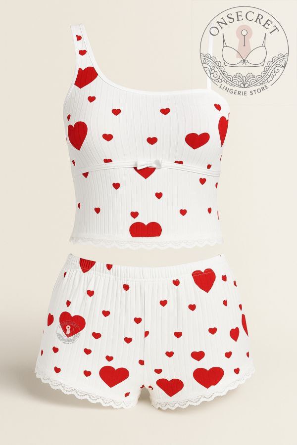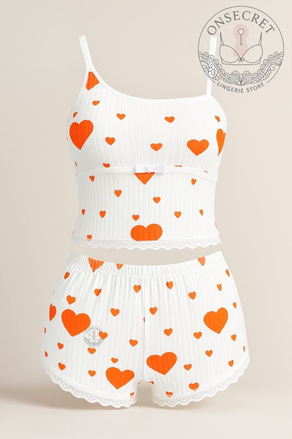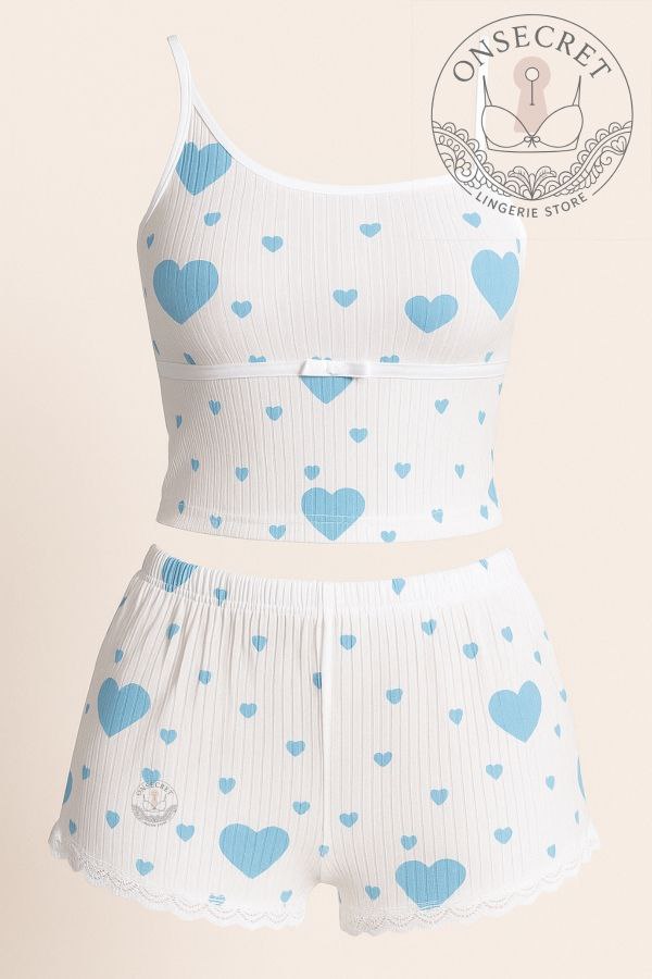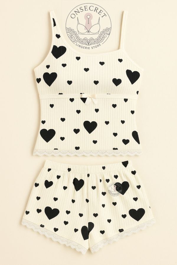 ست تاپ و شورت زنانه نخی مدل قلبی یقه رومی کد M726