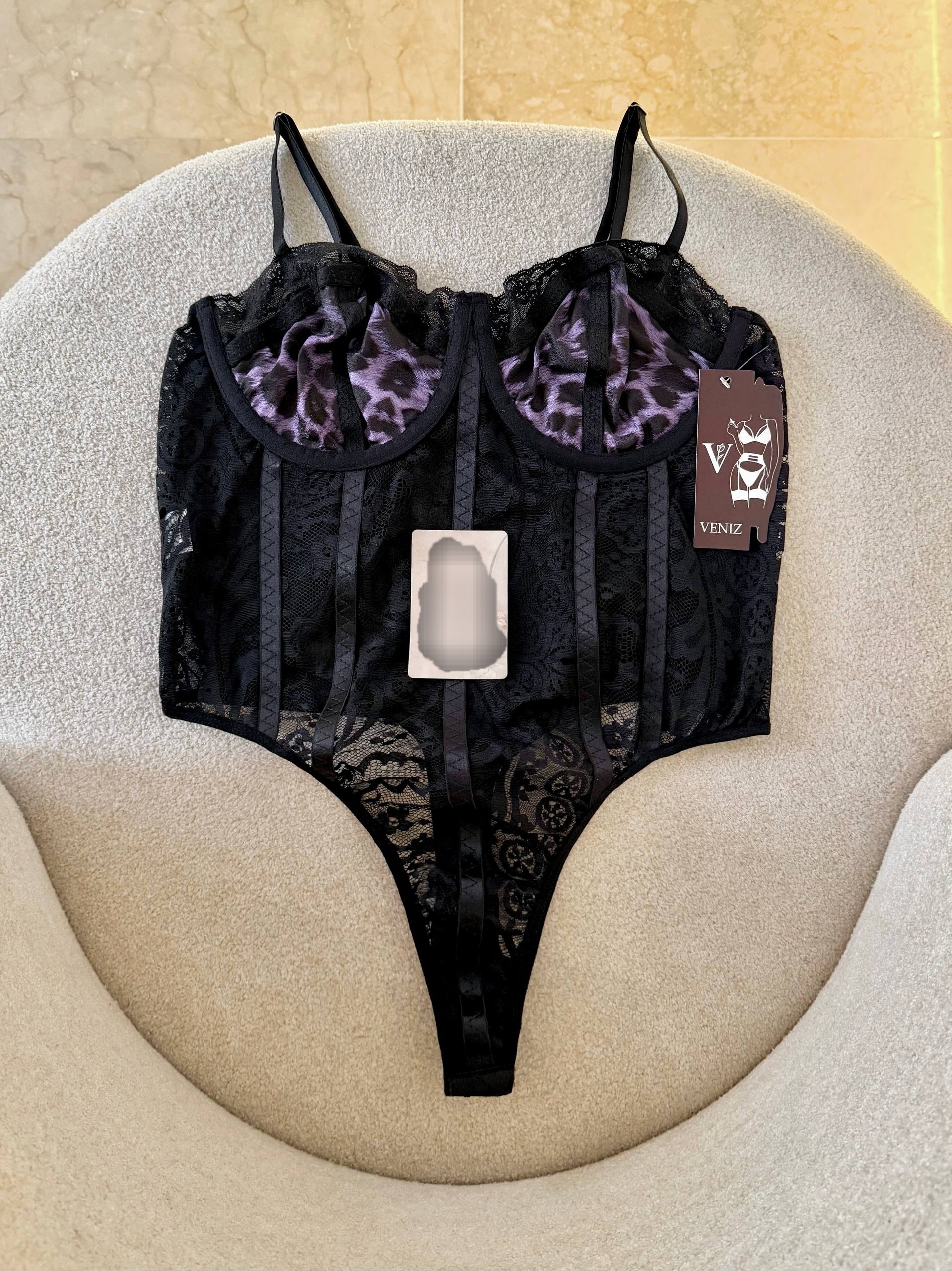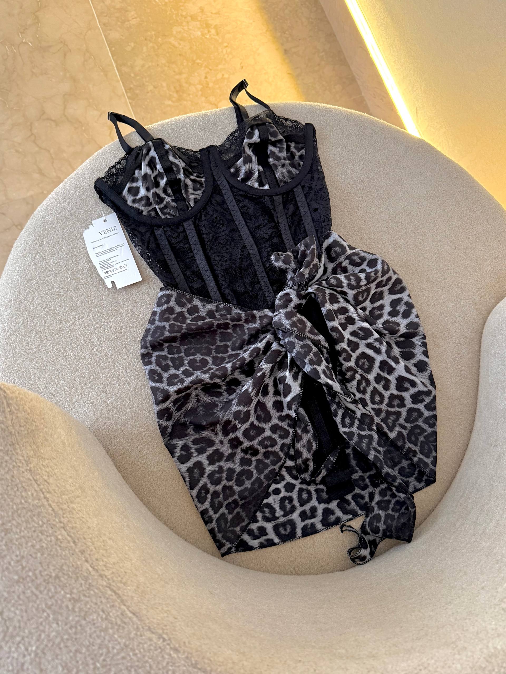 مدل بادی: کاپ سینه پلنگی رنگی، فنردار، بند سرشانه رگلاژدار، فاق بکلس قزندار