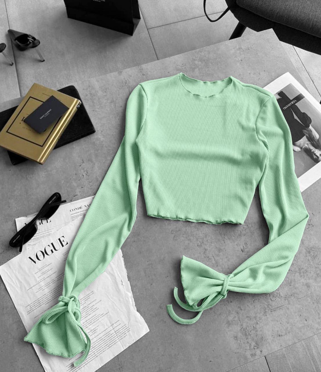 این کراپ فانتزی جذاب با رنگهای پاستیلی تابستانی با جنس خنک فانریپ کبریتی، بسیار راحت و جذب تن بوده و به راحتی با استایل و سلیقه شما ست میشود. آستین این کراپ بلند است و میتوان آن را زیر سارافون و روپوش های آستین حلقه ای پوشید. این مدل مناسب فری سایز از ۳۶ تا ۴۲ میباشد و قد آن ۴۵ سانتیمتر است