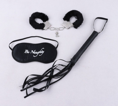 ست کامل: دستبند، شلاق، چشمبند