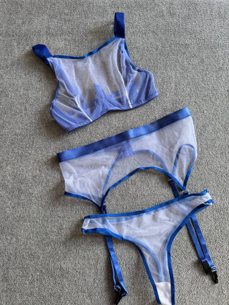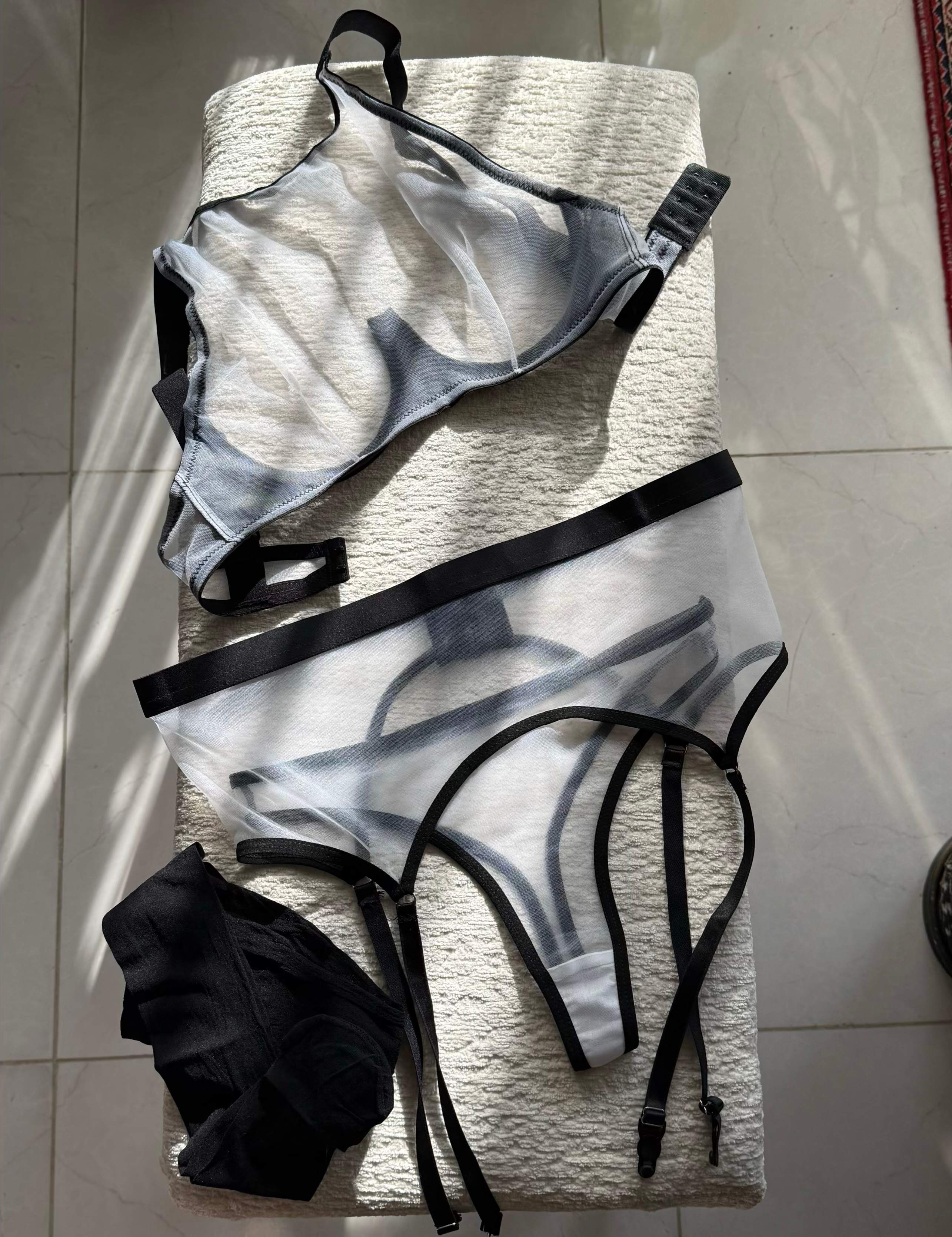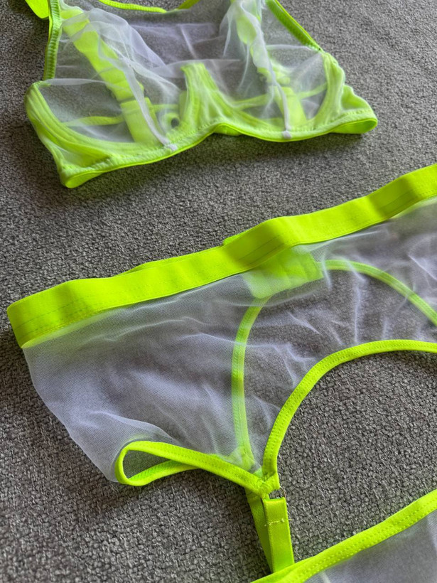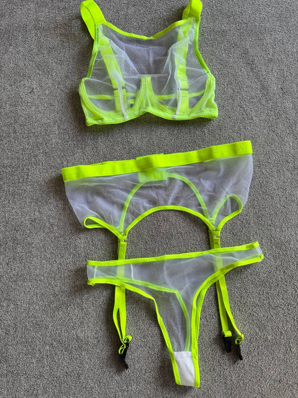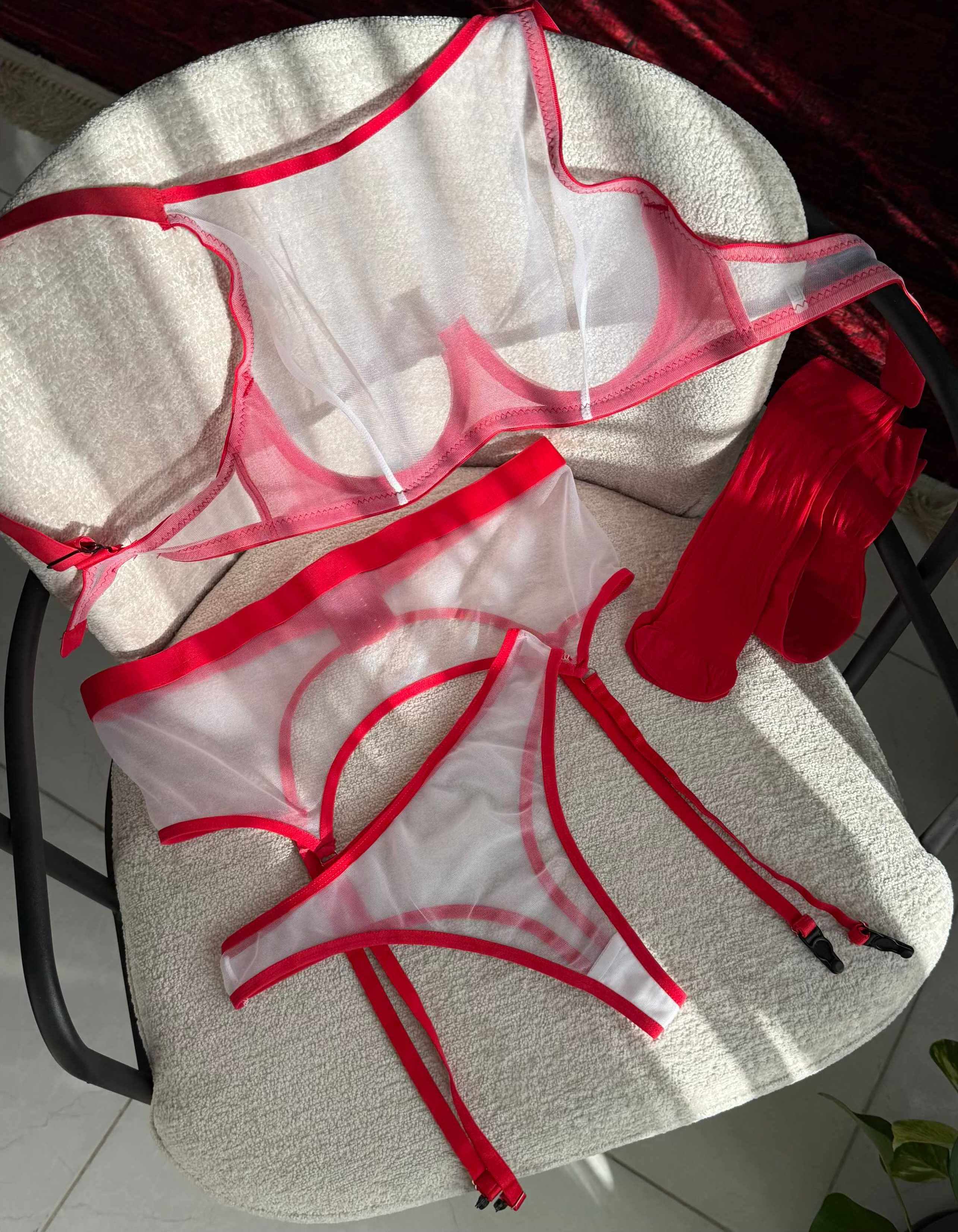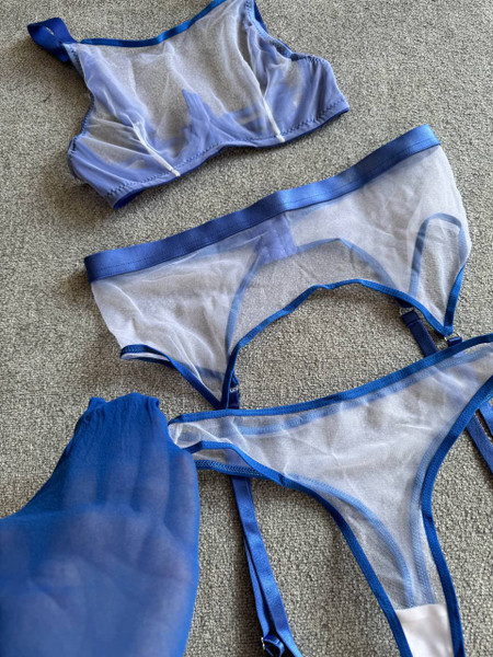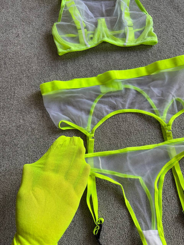 ست لباس زیر زنانه فانتزی ۴ تکه مدل شیشه ای فنردار و جورابدار کد 4185
