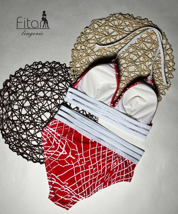 مایو دو تیکه زنانه فانتزی مدل فاق بلند، جنس غواصی ضد کلر کد M208