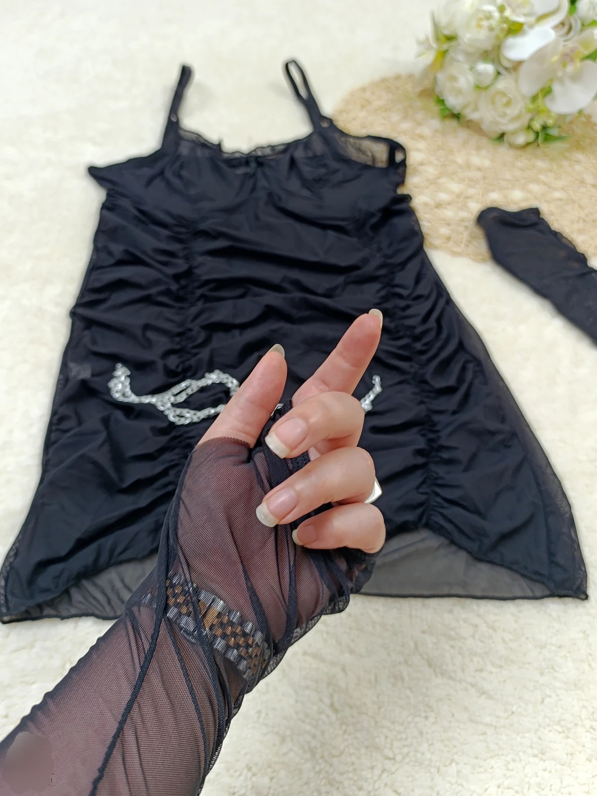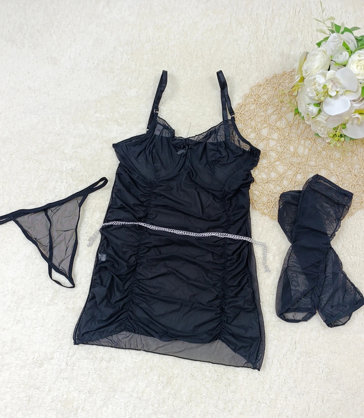 این ست لباس خواب فانتزی و ساق دست زیبا با طراحی خاص، انتخابی متفاوت و جذاب برای استایل شب شماست. ساق دست و کمربند زنجیری جلوه منحصربهفردی به مجموعه دادهاند. برای دیدن عکس تنخور اینجا کلیک کنید عکس خود کار درج شده