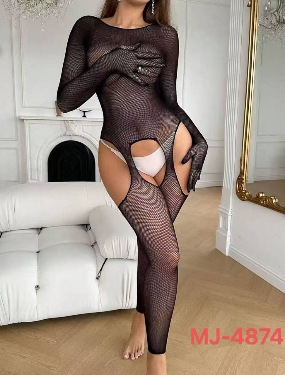 بادی استاکینگ زنانه فانتزی فول بادی دستکش دار فاق باز