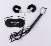 ست کامل : دستبند فلزی با کلید، شلاق، چشمبند