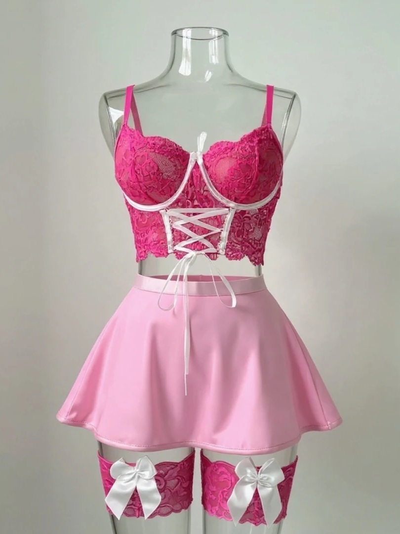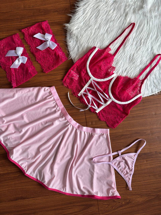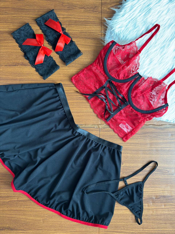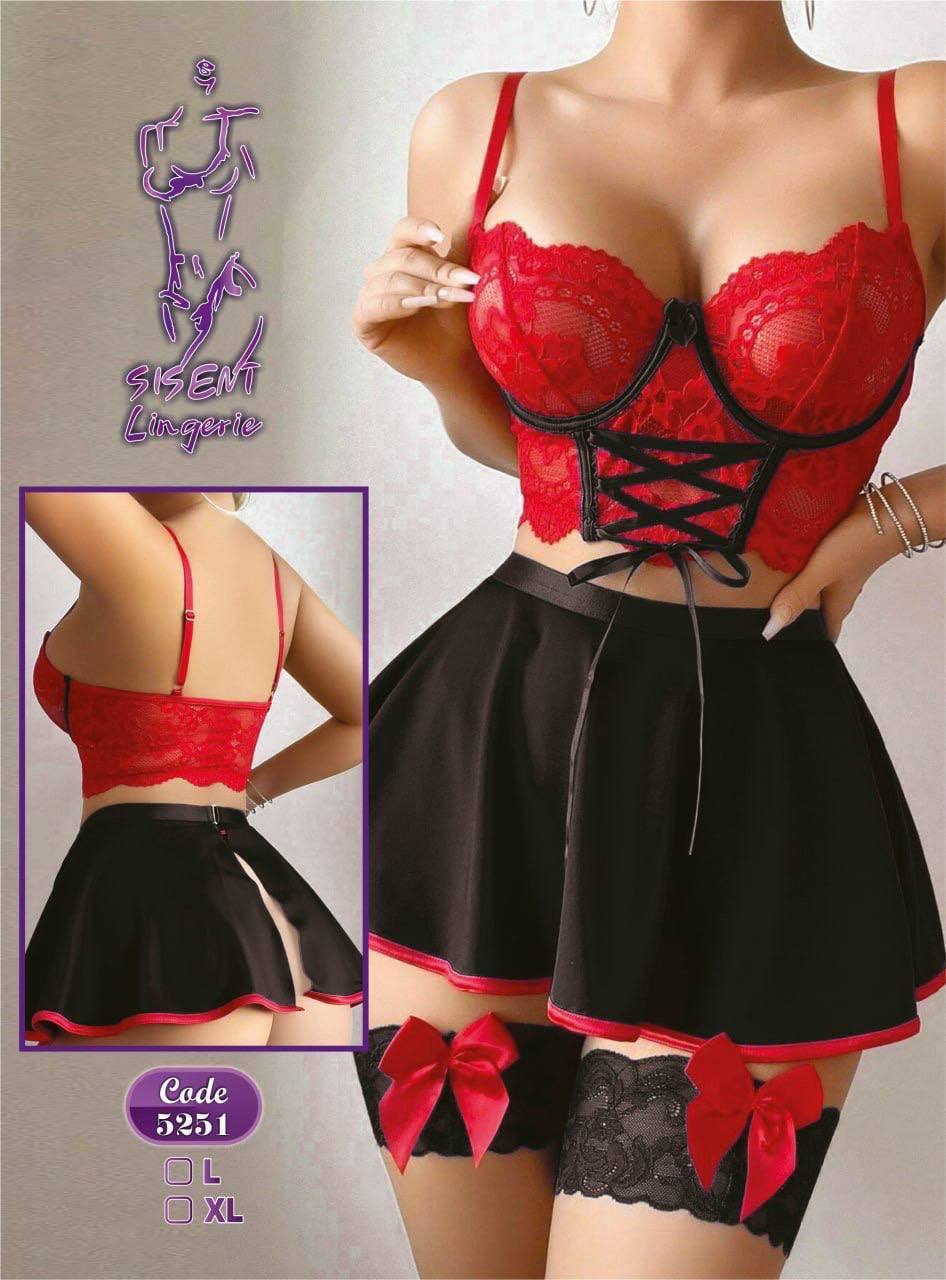 ست لباس زیر ۳ تکه فنردار دامنی کد 5251