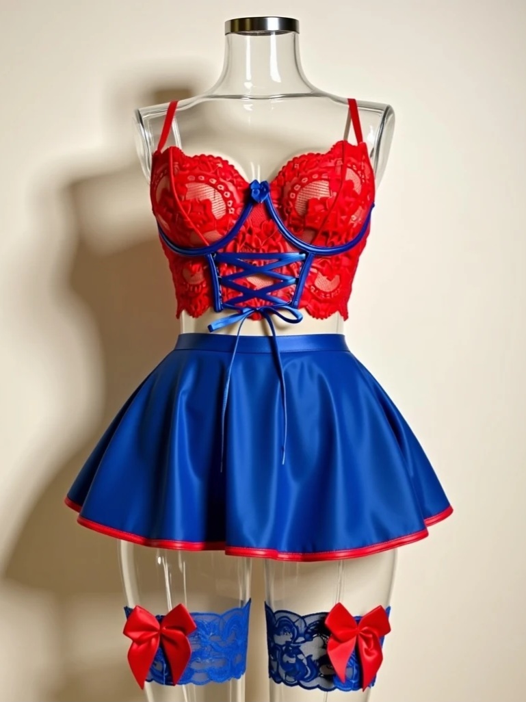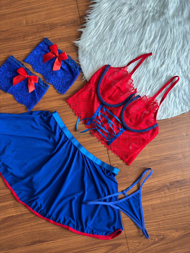 این ست لباس زیر فانتزی ۳ تکه با رنگ آمیزی خاص خود میتواند یک استایل جذاب برای شما بسازد. رنگ های شاد و هیجان انگیز، این ست را مناسب هدیه کرده است، همچنین مناسب قرارهای خصوصی و عاشقانه شماست.برای دیدن عکس تنخور اینجا کلیک کنید