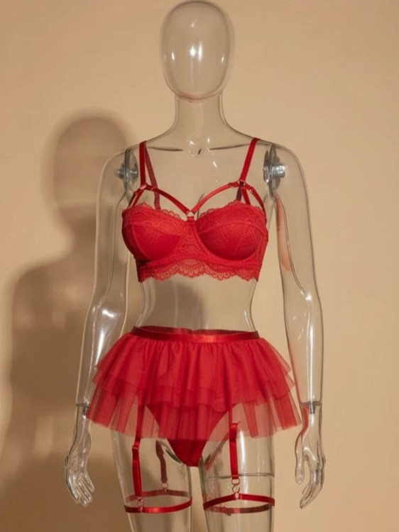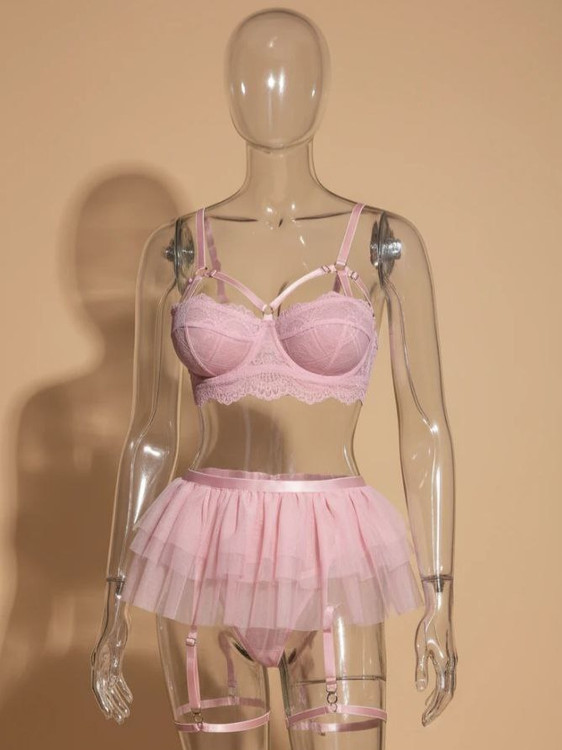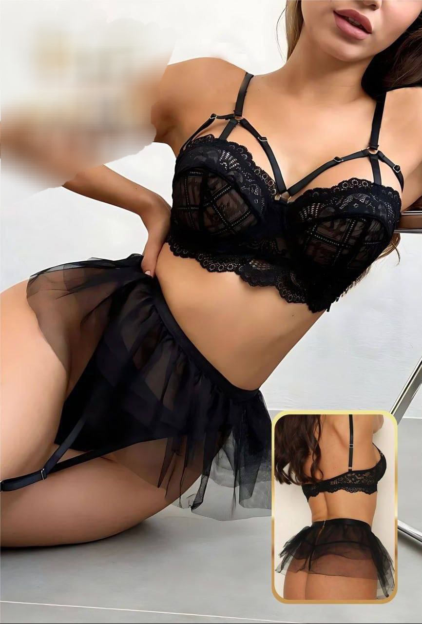 ست لباس زیر فانتزی زنانه فنردار هارنس دار از جنس تور و دانتل کد M351