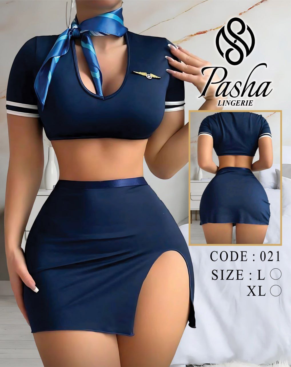 ست کاستوم فانتزی زنانه ۲ تکه مدل مهمانداری هواپیما کد M021