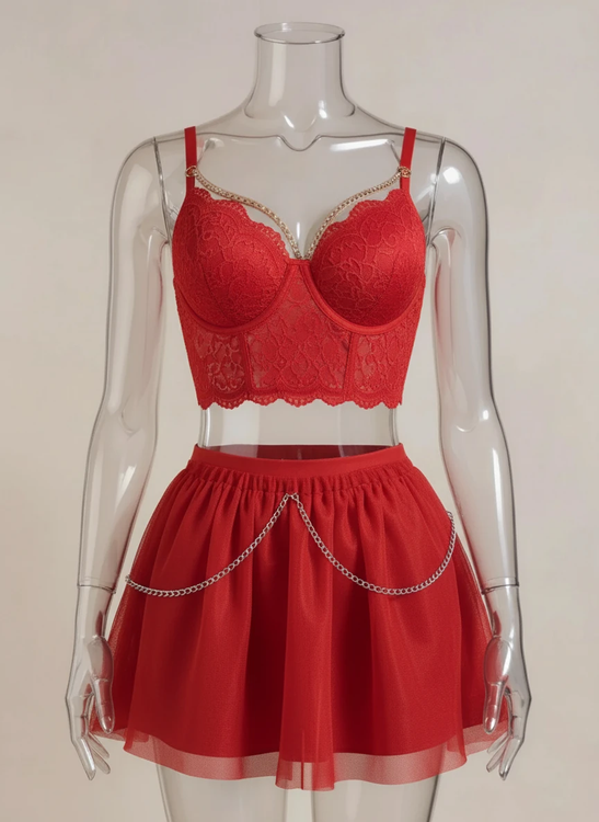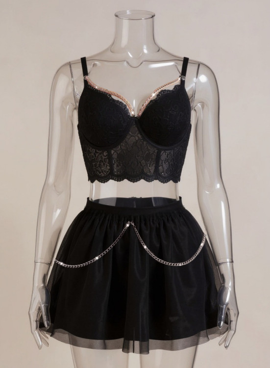 ست نیمتنه و دامن زنانه فانتزی دانتل و تور با زنجیرهای ضد حساسیت کد 1210