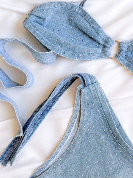 ست شورت و سوتین زنانه فانتزی جین نگیندار گره ای کد 3367