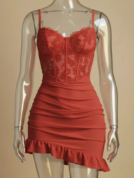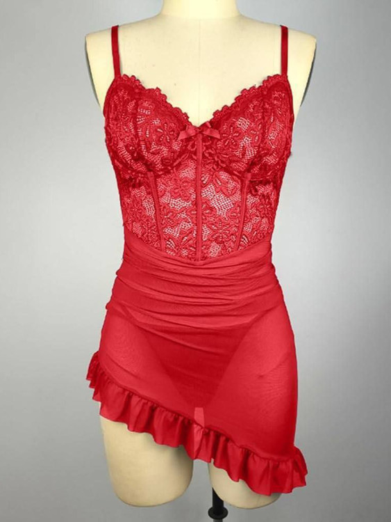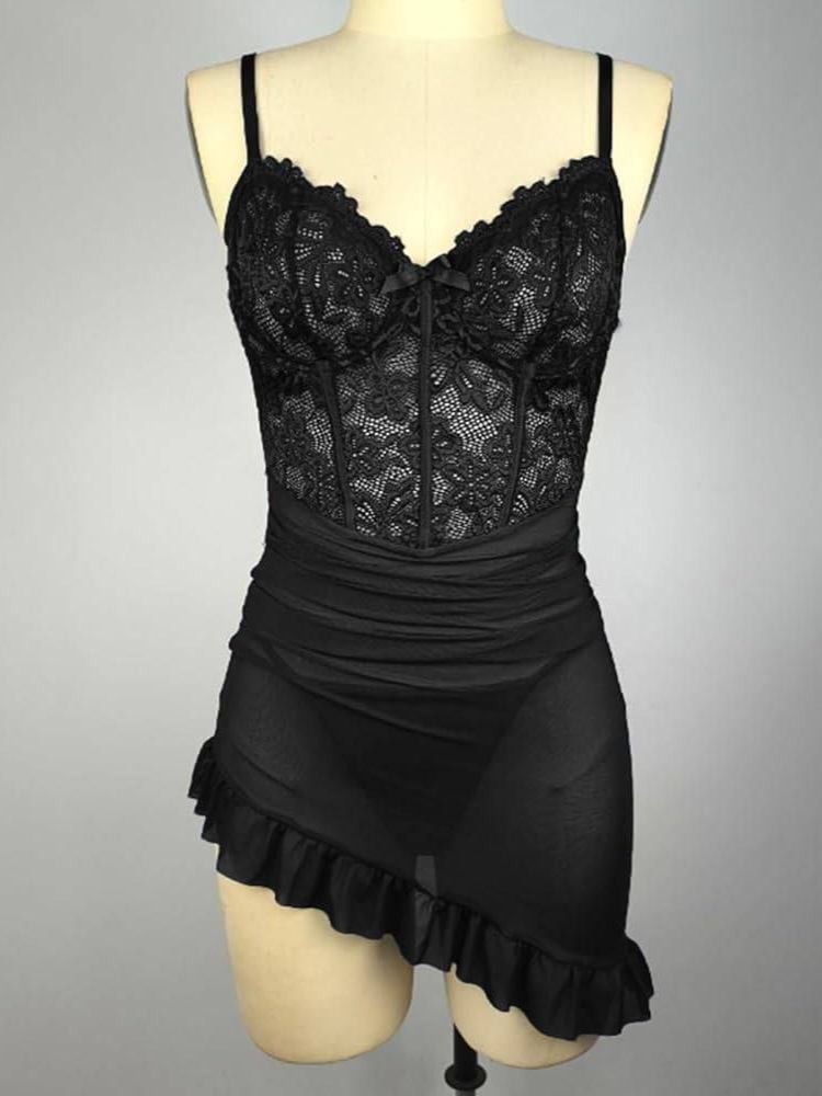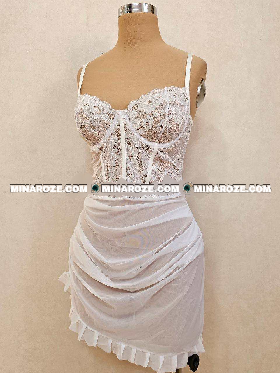 لباس خواب فانتزی فنردار جنس دانتل و یاردی اروپایی کد 3187